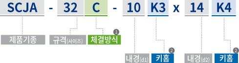 - 해당 내경에 기입된 치수 규격의 키홈 가공