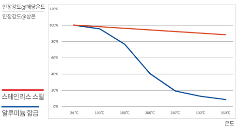 2. 알루미늄 합금에 비해 내열성이 뛰어나 고온 환경에서도 기계적 물성치의 변동이 거의 없습니다.