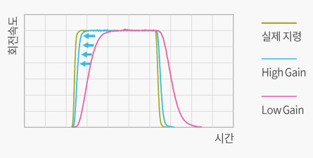 - Gain 값을 올리면 반응성이 올라가지만 일반적인 경우 높은 Gain 값은 시스템의 헌팅 및 공진 현상을 야기 합니다.