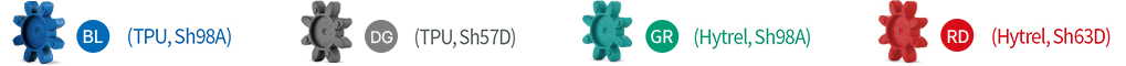 - 슬리브의 종류는 재질과 경도에 따라 RD(Hytrel, Sh 63D), GR(Hytrel, Sh 98A), DG(TPU, Sh 57D), BL(TPU, Sh 98A)로 나누어집니다.