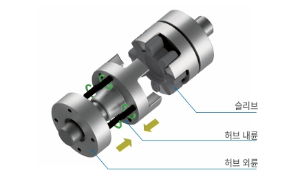 - 슬리브는 토크 전달의 매개체이자 충격 및 비정렬 흡수 역할을 하며 죠 커플링의 성능에 가장 중요한 요소 입니다.
