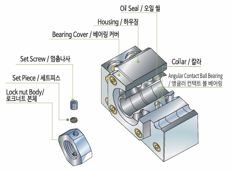 서포트유니트는 볼스크류 양 축단을 정밀하게 지지해 주는