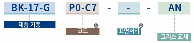 | ① 코드 | 표기 | 베어링 정밀도 | 예압 |
