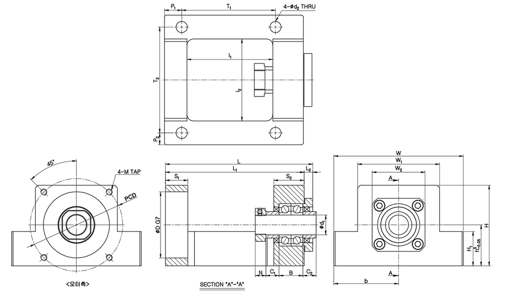 서포트유니트는 볼스크류 양 축단을 정밀하게 지지해 주는